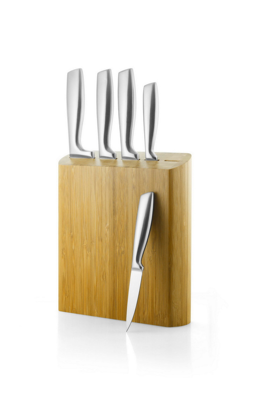 Efektowny komplet noży w bloku z serii Vilagio polsko-włoskiej marki Vialli Design. Noże zostały wykonane z wysokiej jakości stali nierdzewnej, natomiast blok - z drewna. Połączenie tych materiałów ze sobą czyni zestaw niezwykle eleganckim. Noże posiadają certyfikaty jakości oraz certyfikat dopuszczający do kontaktu z żywnością. Komplet nadaje się zarówno do codziennego użytku jak również na prezent. Produkty Vilagio wyróżniają się prostotą formy oraz elegancją. Charakterystyczne dla tej linii jest połączenie porcelany i bambusa, które to materiały, współgrając ze sobą tworzą nowoczesne i praktyczne naczynia. Zestawy misek, talerzyków, podstawek, poza praktycznością posiadają walory użytkowe, dzięki temu nie muszą, a nawet nie powinny być skrywane w zakamarkach kuchennych półek, czy szafek. Uniwersalność Vilagio pozwala na wyposażenie w te produkty nie tylko nowoczesnego, awangardowego wnętrza, ale również klasycznego, czy stylowego.