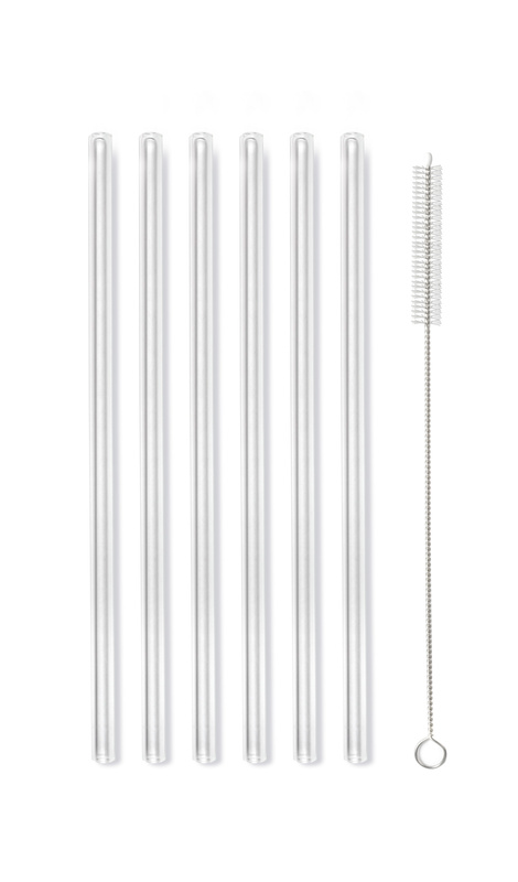 Vialli Design - Zestaw 6 szklanek Vita Heart 300ml i 6 słomek szklanych 20cm transparent