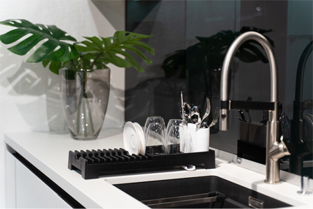 Czarny ociekacz na naczynia Livio Duo to kompleksowe połączenie kilku istotnych walorów. Przede wszystkim jest to funkcjonalny produkt, dzięki któremu możliwe jest wygodne i skuteczne wysuszenie umytych naczyń oraz sztućców. Nowoczesna, praktyczna budowa ociekacza sprawia, że woda ściekająca z umieszczonych w nim naczyń swobodnie spływa w kierunku zlewu. Tak skuteczne, wyjątkowo praktyczne i higieniczne odprowadzanie wody możliwe jest dzięki specjalnej rynience oraz kanalikom, w które wyposażony jest ociekacz.