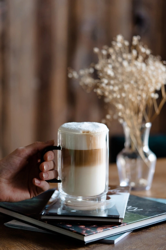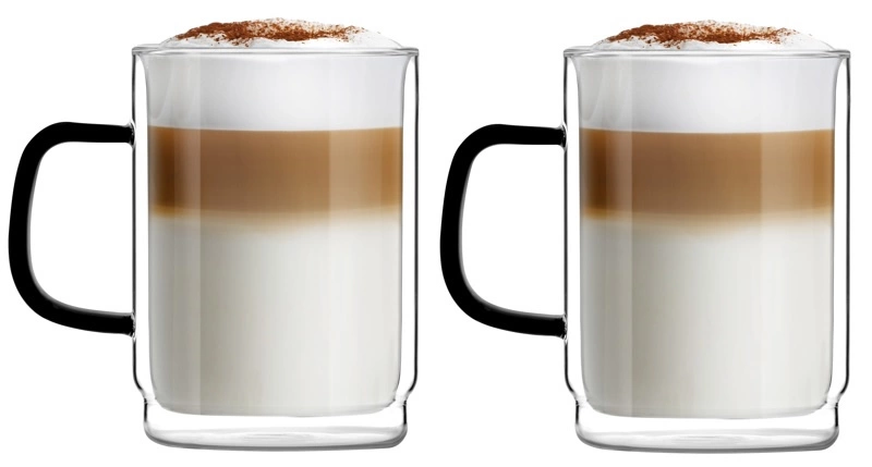Szklanki mają atrakcyjny kształt oraz praktyczny uchwyt, który zapewnia wygodę użytkowania i ułatwia utrzymanie naczynia w rękach, gdy pijesz ulubioną kawę. Mimo obecności gorącego napoju szklanka się nie nagrzewa. Tę zaletę zawdzięcza podwójnym ściankom, które zapobiegają wystudzeniu. Dzięki temu napój w środku jest ciepły przez długi czas, a Ty możesz komfortowo trzymać szklankę.