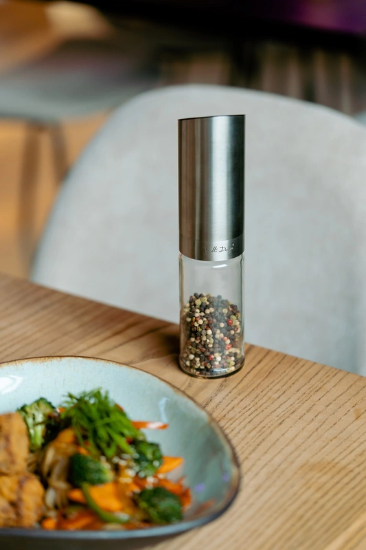 Po prostu przechyl, aby zmielić swoją ulubioną przyprawę.