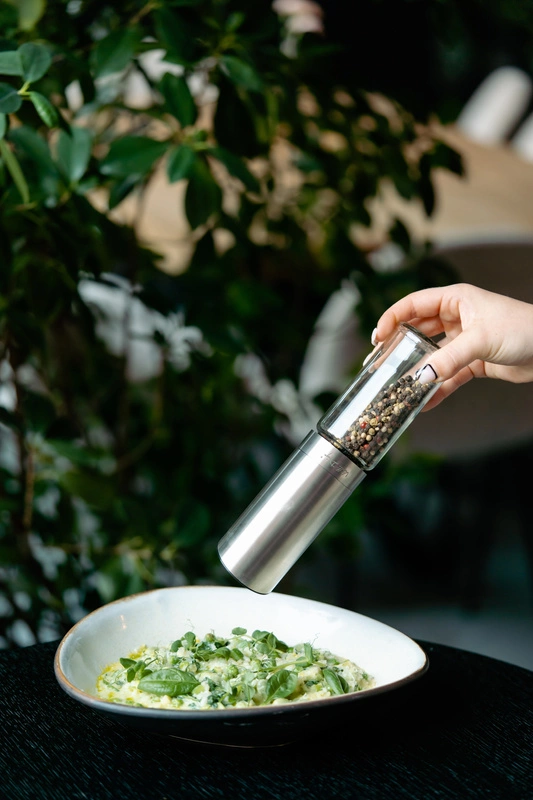 Nowoczesny i niezwykle poręczny elektryczny młynek grawitacyjny SOHO to gwarancja dobrze zmielonego pieprzu oraz soli, a jego wyjątkowy wygląd wzbogaci wystrój Twojego stołu oraz kuchni.
