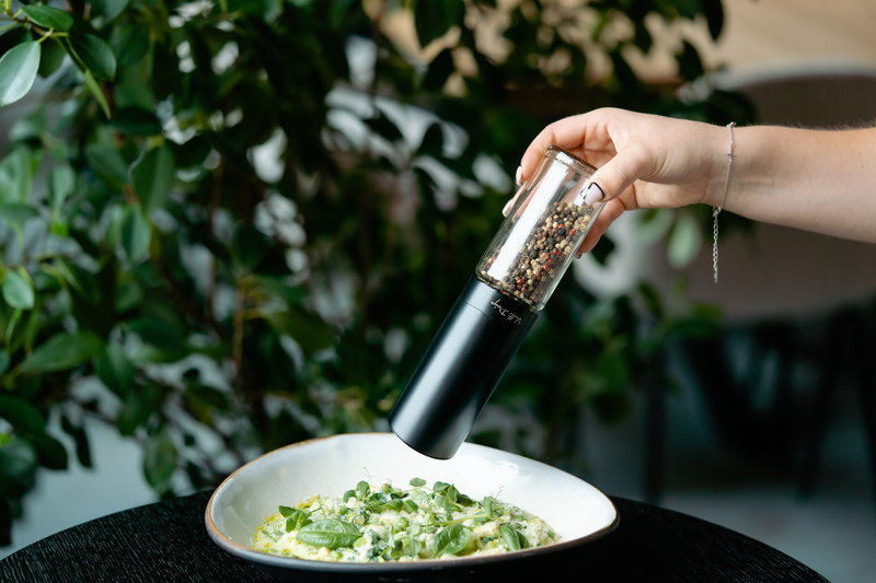 Nowoczesny i niezwykle poręczny elektryczny młynek grawitacyjny SOHO to gwarancja dobrze zmielonego pieprzu oraz soli, a jego wyjątkowy wygląd wzbogaci wystrój Twojego stołu oraz kuchni.