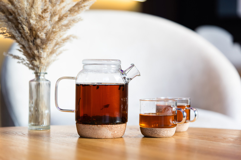 Zestaw dzbanek 800ml i 2 filiżanki z korkowymi podstawkami 250 ml Vilagio marki Vialli Design.