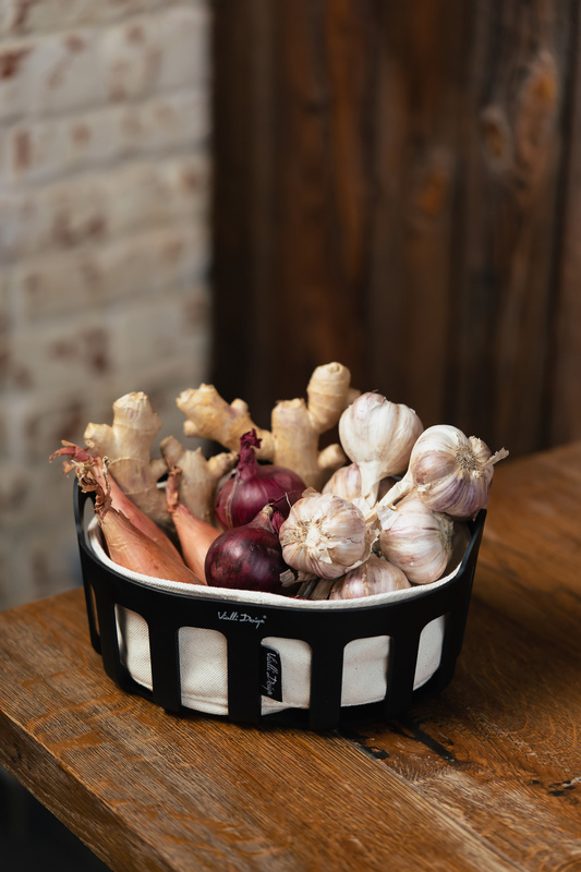 Ażurowa konstrukcja zapewnia swobodny dopływ powietrza, co pozwala dłużej utrzymać świeżość zawartości. Możemy go używać samodzielnie np. na większe owoce (może on również pełnić funkcję sitka do opłukania jabłek) lub w bardziej eleganckiej wersji – z materiałowym wypełnieniem.
