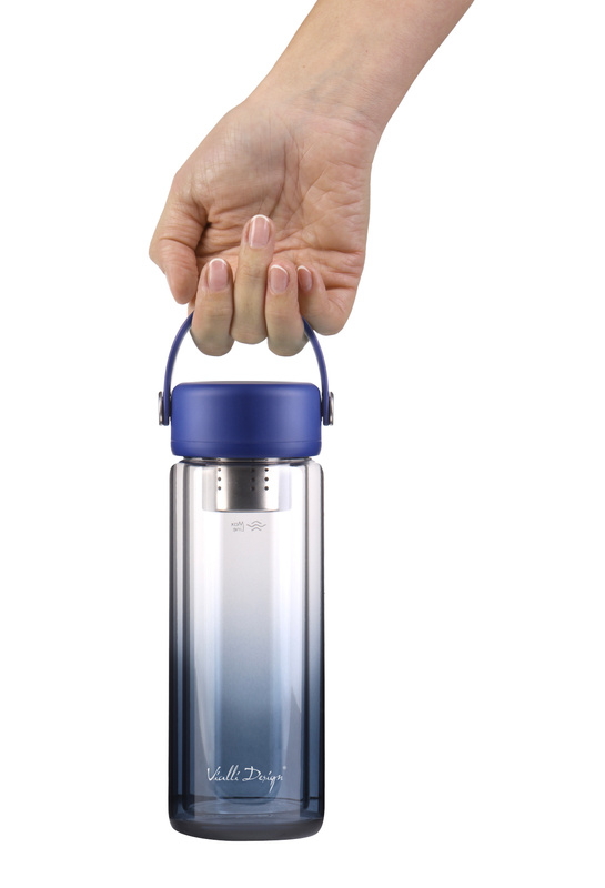 Vialli Design - Butelka z podwójną ścianką i zaparzaczem Fuori 350 ml granatowa