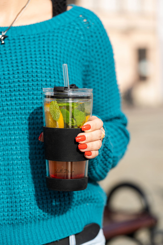 Świetnie nadaje się do bezpiecznego picia wszelkich gorących napojów, takich jak kawa czy herbata. Idealny także do serwowania orzeźwiających napojów, koktajli, drinków, pysznych soków czy smoothie, zwłaszcza w upalne dni. Doskonale sprawdzi się na pikniku, tarasie, w ogrodzie, na przyjęciu, podczas grilla na świeżym powietrzu. Szczelna przykrywka z otworkiem na słomkę doskonale ochroni napój przed dostaniem się do środka wszędobylskich owadów oraz zapobiegnie rozlaniu zawartości.