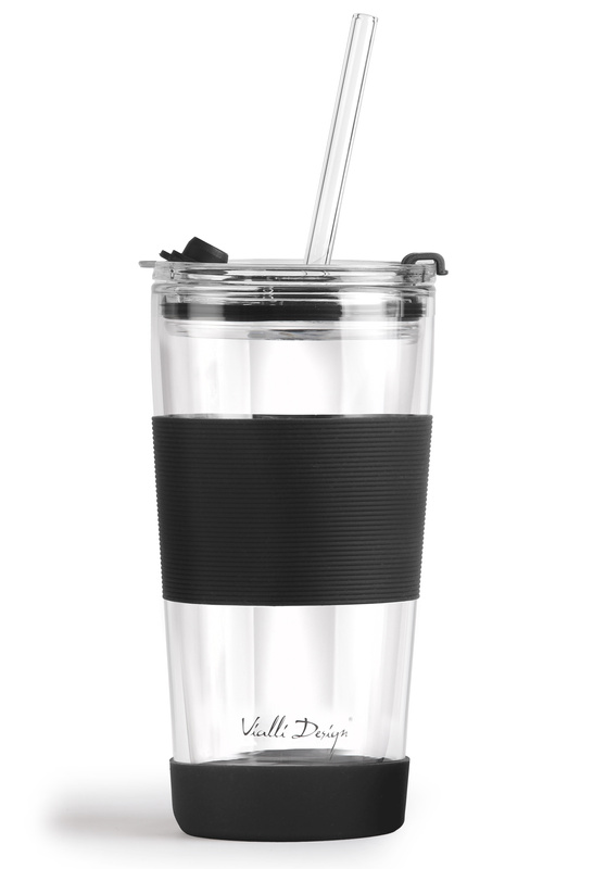 Vialli Design - Kubek termiczny szklany ze słomką 600 ml czarny Fuori