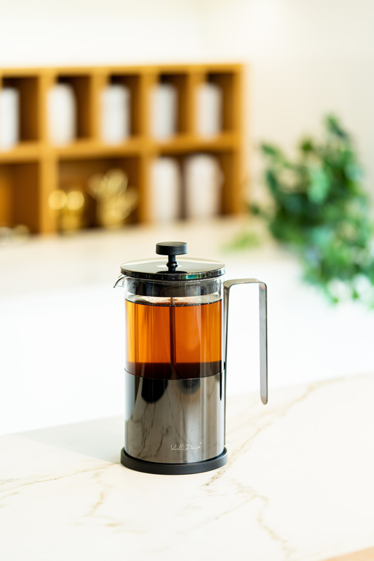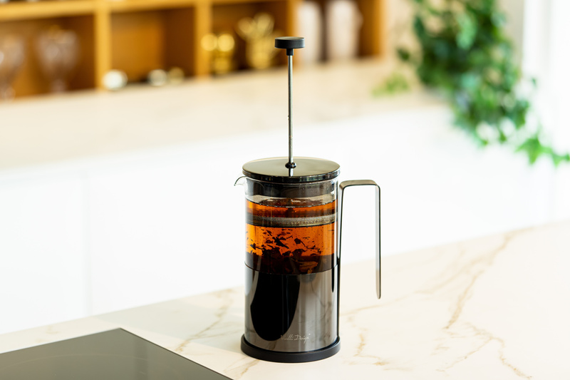 Wystarczy nasypać do komory ulubioną mieszankę, zalać wrzątkiem i odczekać aż napój osiągnie odpowiedni stopień zaparzenia. Kiedy tłok zostanie naciśnięty, sitko oddzieli fusy/susz od reszty, dając możliwość nalewania klarownego napoju.