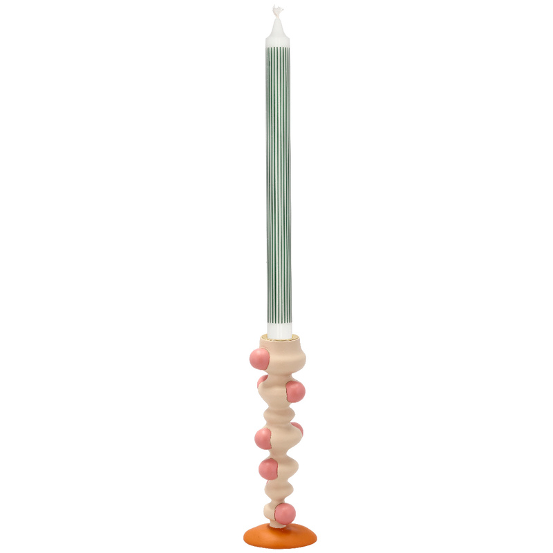 Świecznik wyróżnia się pięknymi kolorami, które mają pozytywny wpływ na nastrój i samopoczucie. Polirezyna, z której jest wykonany, to materiał trwały oraz lekki. Jego nowoczesny design idealnie komponuje się ze skandynawskim stylem wnętrz, dodając im świeżości i życia. Ten wyjątkowy świecznik to nie tylko praktyczny element, ale także oryginalna dekoracja, która podkreśli charakter Twojego domu.