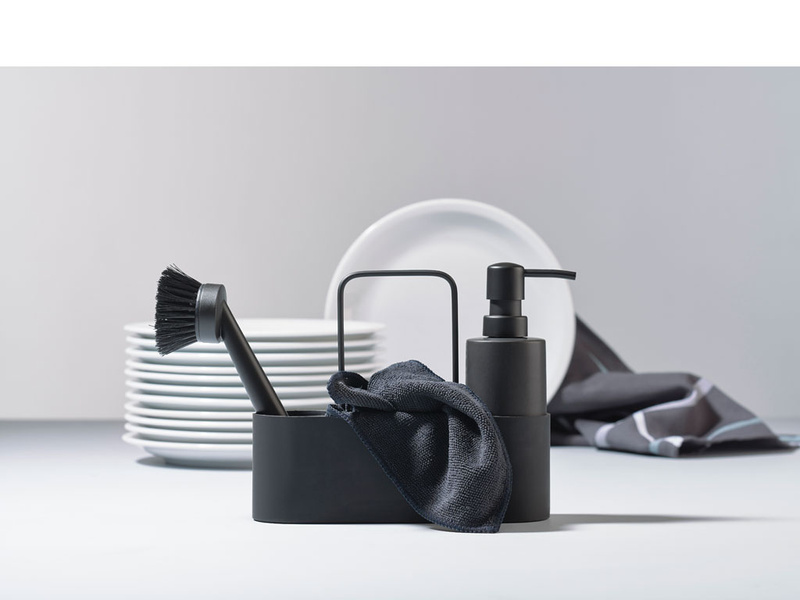 Jedną z rzeczy, które znajdziesz w naszej kolekcji Singles, jest kompaktowy, wielofunkcyjny organizer do zlewu. Idealnie pasuje do nowoczesnej kuchni. Przyjemny w dotyku. W zestawie uchwyt na ściereczkę, szczotka i dozownik mydła.