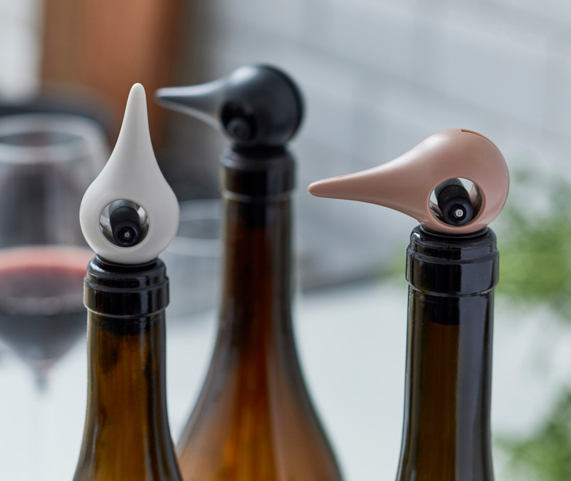 Elegancki design korka do wina Bird ma charakteryzuje się pomysłowym rozwiązaniem. Włóż korek do otwartej butelki wina, przechyl dziób ptaka na przeciwną stronę i uzyskaj całkowicie zamkniętą butelkę. Może nawet leżeć płasko w lodówce do następnego razu, gdy będziesz chciał siegnąć po kieliszek ulubionego wina.