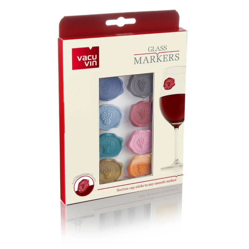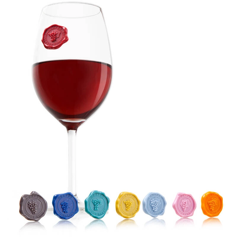Znaczniki na szklanki i kieliszki klasyczne przybrały kształt pieczęci z kiścią winogron oraz nazwami różnych szczepów (syrah, merlot, cabernet sauvignon, sauvignon blanc, riesling, chardonnay, pinot blanc, pinot noir). Znaczniki pozwolą każdemu z gości łatwo odróżnić, który kieliszek należy do niego.