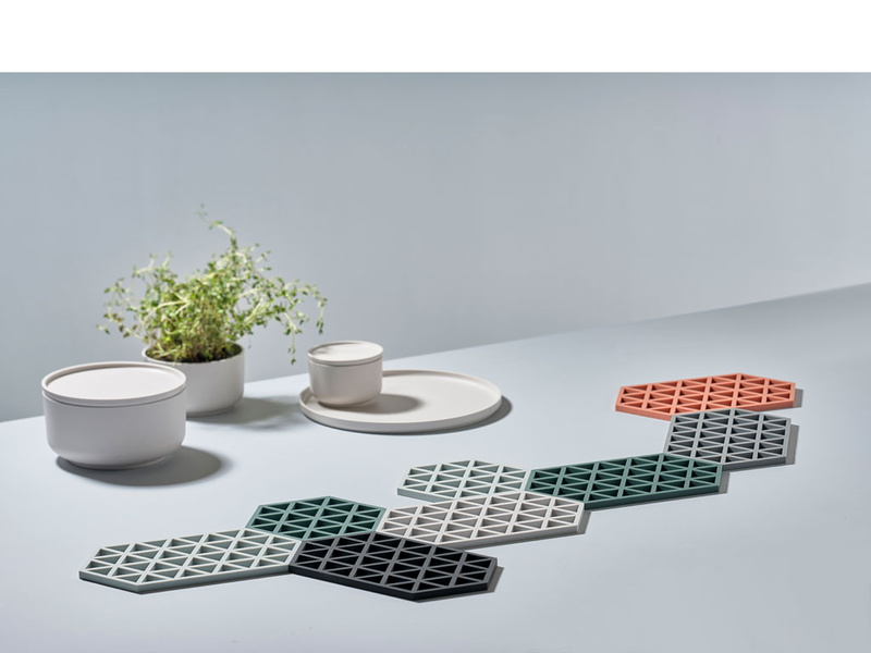 Podkładki Triangles są wykonane z silikonu a ich nowoczesny design zachęca do rozłożenia całego zestawu na całej długości stołu bez umieszczania na nich czegokolwiek. Są odporne na temperaturę do 250°C i można je myć w zmywarce.