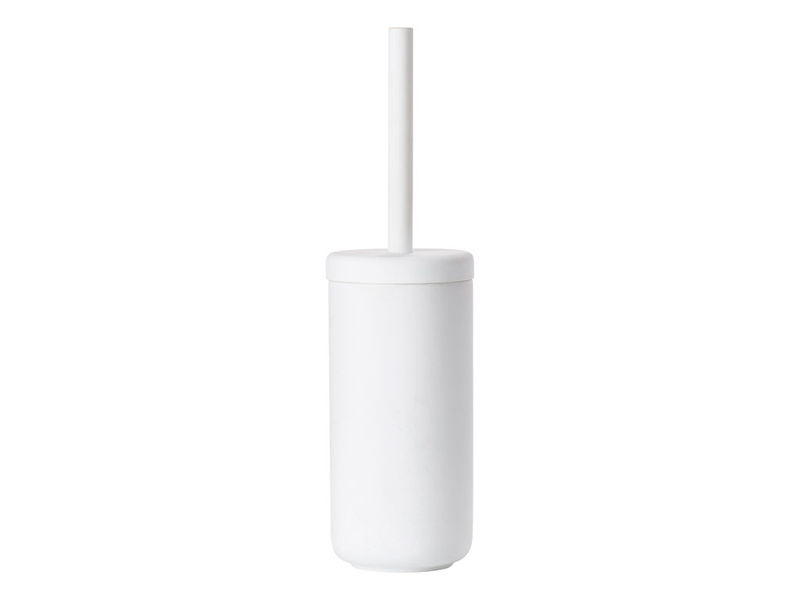 Szczotka toaletowa z serii łazienkowej Ume wyposażona jest w praktyczny wewnętrzny pojemnik, który ułatwia usuwanie nadmiaru wody. Szczotka ma poręczną długość i łatwo wsuwa się na swoje miejsce w pojemniku.