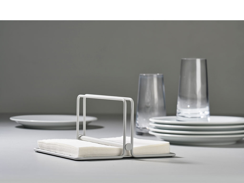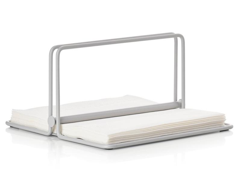 Prosty serwetnik serii Singles ma sprytny, mały silikonowy detal, który zapewnia, że zabierzesz tylko jedną serwetkę na raz. Jest stylowy i mieści serwetki w wielu rozmiarach.