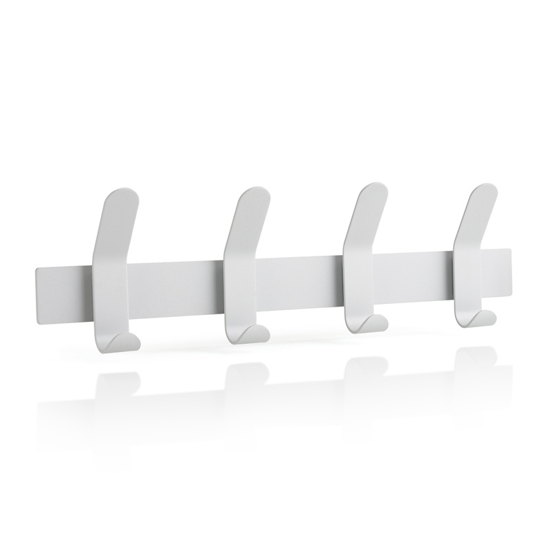 To praktyczne rozwiązanie znajdzie zastosowanie w przedpokoju, recepcji, poczekalni. Całość składa się z czterech podwójnych punktów do wieszania, mocowania ukryte są za odpinanymi haczykami, które łatwo zatrzaskują się na swoim miejscu po zamontowaniu stelaża. Stal, którą wykorzystano do produkcji, wybrano ze względu na jej trwałość i estetykę, gwarantując długotrwałe użytkowanie w niezmienionym stanie.