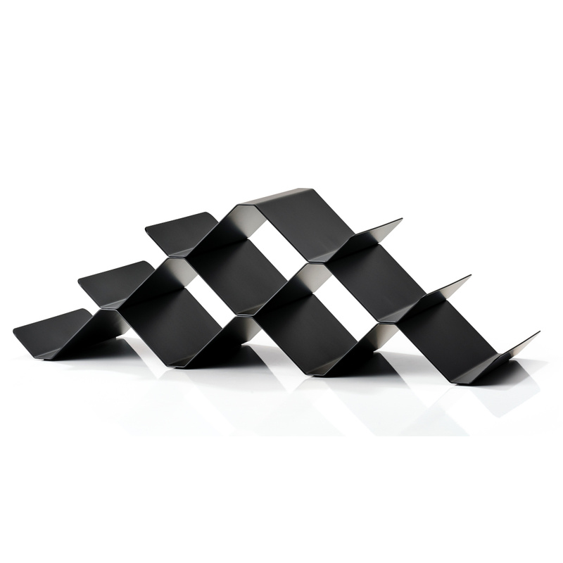 Stylowy oraz funkcjonalny stojak na wino wykonany z metalu w kolorze czarnym. Pomieści do dziewięciu butelek wina. Charakteryzuje się modułową budową, dlatego można zmniejszać jego wymiary, jeśli ilość butelek jest mniejsza. Dzięki takiemu rozwiązaniu stojak będzie zawsze wypełniony, co polepsza wrażenia wizualne. Jego elegancki design oraz perfekcyjne wykończenie, sprawia że będzie świetną dekoracją w każdym pomieszczeniu, a butelki Twojego ulubionego trunku będą się okazale prezentować. Stojak dzięki swojej konstrukcji jest stabilny.