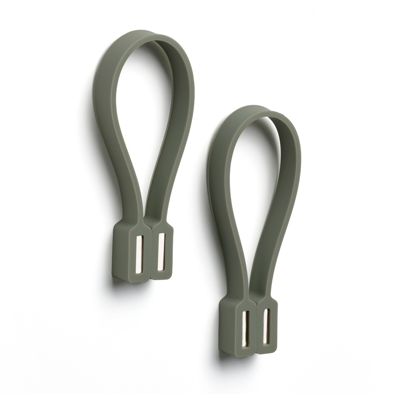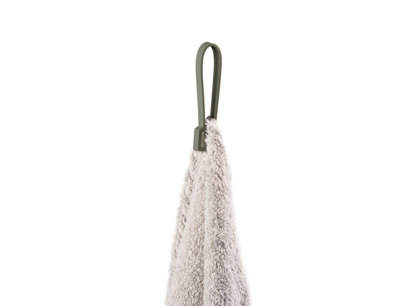 Funkcjonalny zestaw zawieszek do ręczników i ścierek, które nie mają pętelek do powieszenia. Silikonowy pasek posiada magnesy na końcach, między którymi wystarczy włożyć róg ręcznika.