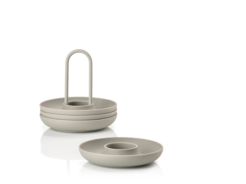 Cztery eleganckie kieliszki na jajka w stojaku serii Singles idealne na rodzinne śniadanie, które można umieścić na stole za pomocą jednej ręki. Wyrafinowany design z pewnością sprawi, że naczynia będą interesującym dopełnieniem każdej kuchni.