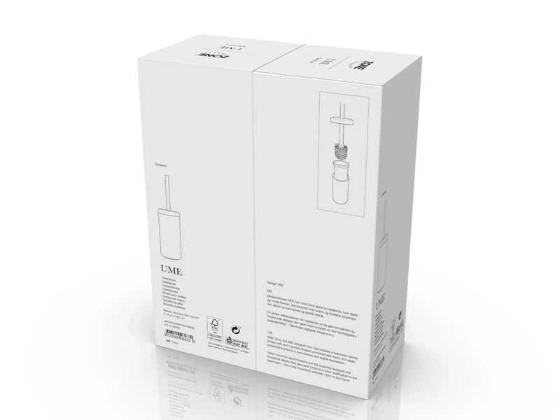 Szczotka Ume wykonana jest z kamionki. Wysoka jakość materiałów połączona z prostym i minimalistycznym designem oraz funkcjonalnością, to zalety tego produktu. Wyposażona jest w praktyczny wewnętrzny pojemnik, który ułatwia usuwanie nadmiaru wody. Szczotka ma poręczną długość i łatwo wsuwa się na swoje miejsce w pojemniku.
