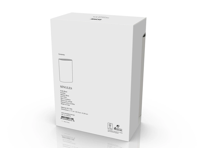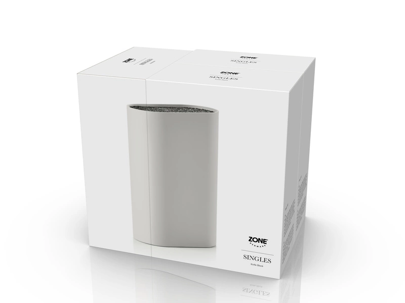 Nowoczesny, minimalistyczny blok na noże. Posiada wyjmowany wkład wykonany z tworzywa sztucznego w formie pręcików, który umożliwia umieszczenie noży w dowolny sposób.