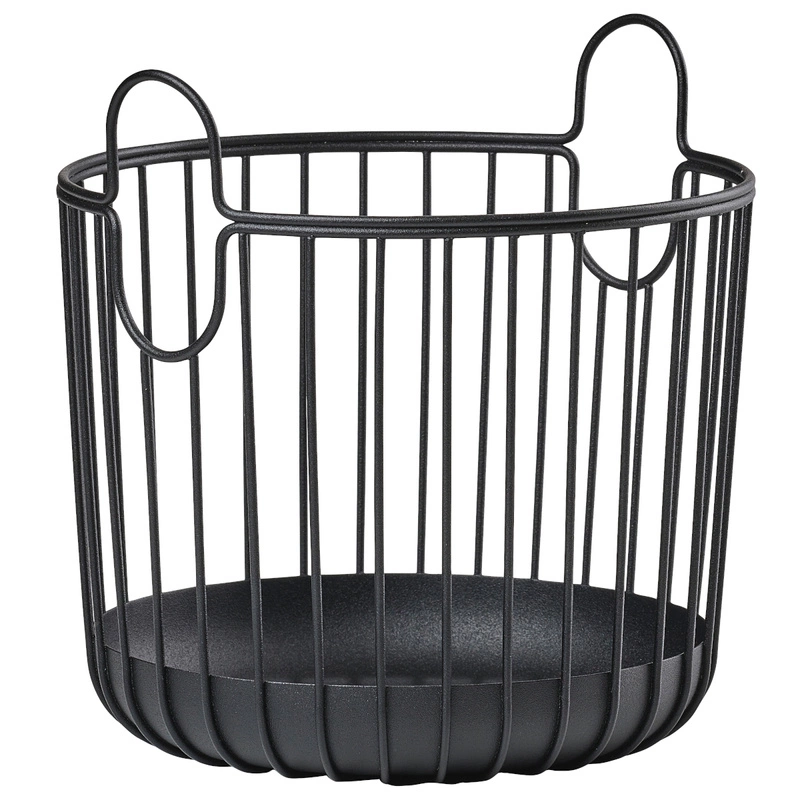 Elegancki, metalowy kosz na ręczniki lub pranie w łazience, poduszki, koce lub czasopisma w salonie, może pełnić również funkcję ozdobnej, ażurowej osłonki na większe rośliny doniczkowe.