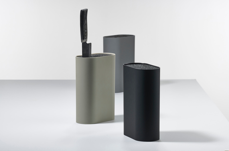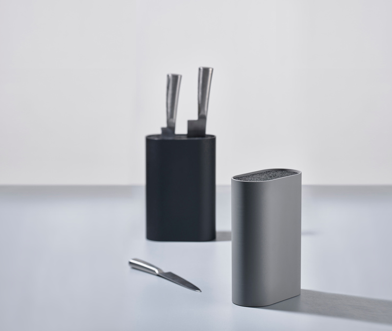 Nowoczesny, minimalistyczny blok na noże. Posiada wyjmowany wkład wykonany z tworzywa sztucznego w formie pręcików, który umożliwia umieszczenie noży w dowolny sposób.