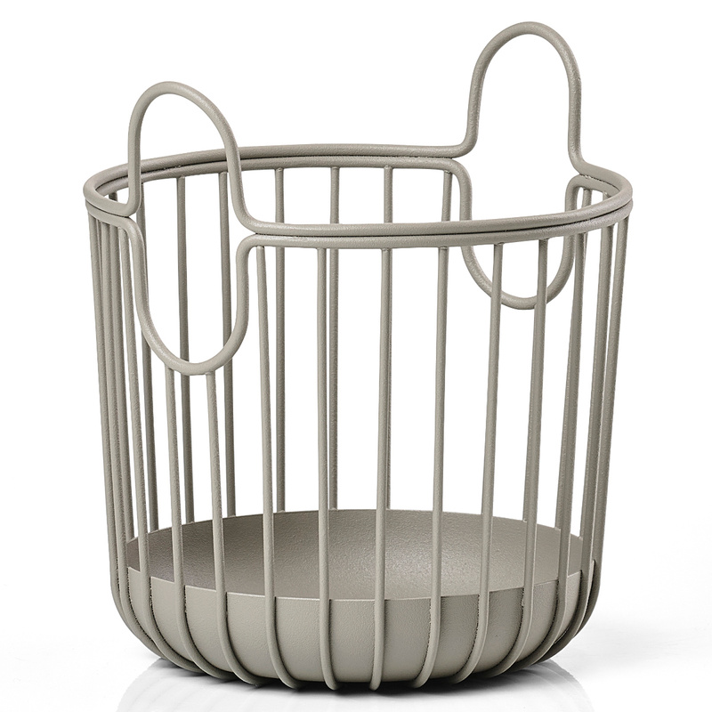 Elegancki, metalowy kosz na ręczniki lub pranie w łazience, poduszki, koce lub czasopisma w salonie, może pełnić również funkcję ozdobnej, ażurowej osłonki na większe rośliny doniczkowe.