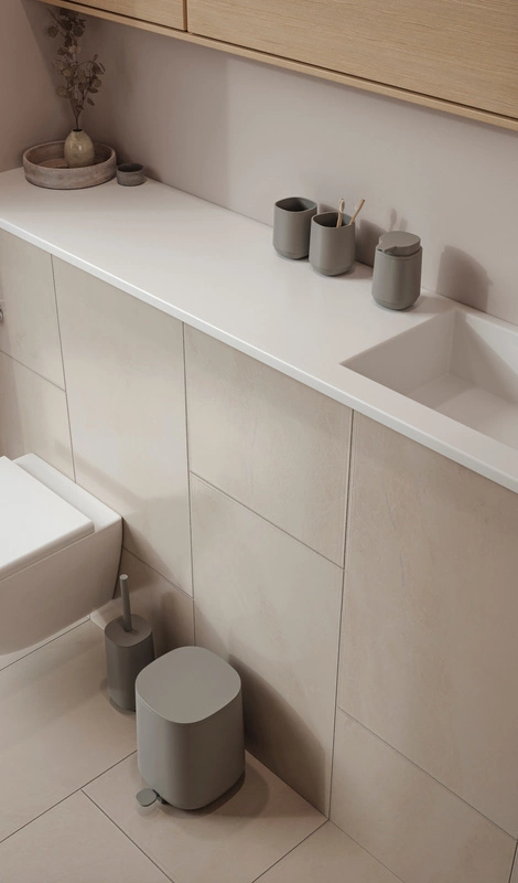 Szczotka toaletowa z linii TIME wykonana jest z solidnego betonu, uzupełnionego dyskretnymi detalami z tworzywa sztucznego. To połączenie naturalnej prostoty i użyteczności, które świetnie wpisuje się w nowoczesne trendy. Produkt posiada wymiary idealne do każdej łazienki: