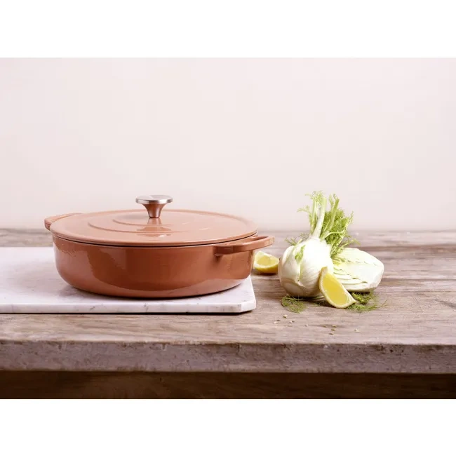 Wysokiej jakości żeliwo — doskonałe do pieczenia, duszenia i gotowania gulaszu, zapewniające znakomite zatrzymanie i równomierne rozprowadzanie ciepła.