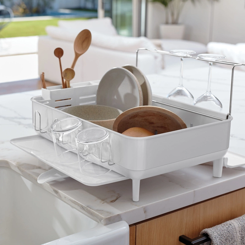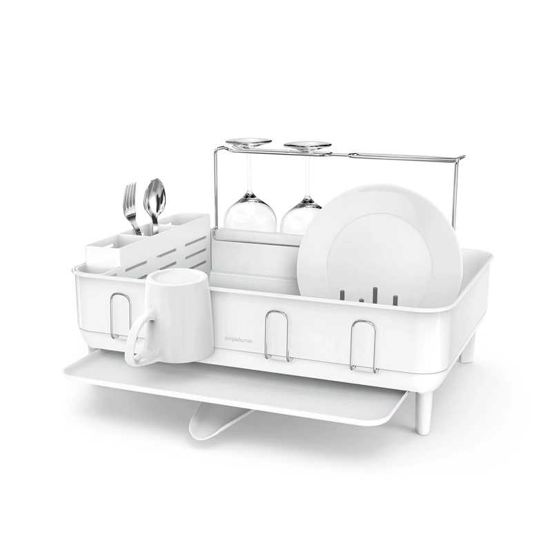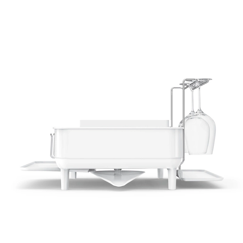 simplehuman - Ociekacz na naczynia z uchwytem na kieliszki - biała stal
