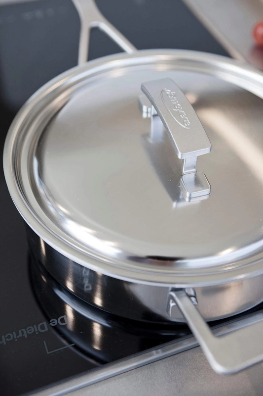 Patelnia wykonana została z pięciowarstwowej mieszanki szlachetnej stali nierdzewnej i aluminium, które charakteryzuje się doskonałą przewodnością. To właśnie dzięki temu ciepło rozprowadzane jest szybko i równomiernie na całej powierzchni nawet przy punktowym dostępie energii. Specjalna powłoka Silvinox® to kolejna zaleta, która ułatwia codzienną pracę umożliwiając łatwe i szybkie czyszczenie i zapobiegając przebarwieniom przez długie lata. Ponadto wykończenie nadaje patelni srebrzysto-białą barwę, która pięknie prezentuje się w każdej kuchni. Patelnia wyposażona jest w dwa poręczne uchwyty wykonane ze stali o niskiej przewodności. Dzięki temu nawet bezpośrednio po zdjęciu z palnika pozostają one przyjemnie chłodne, zapewniając bezpieczeństwo. Szczelna pokrywa umożliwia przygotowanie dań nawet przy niewielkiej ilości wody czy tłuszczu, dbając jednocześnie o nieuciekanie ciepła i czyniąc gotowanie jeszcze bardziej ekonomicznym. Głęboka patelnia Demeyere Industry używana być może na wszystkich rodzajach kuchenek, w tym indukcyjnych. Z tym praktycznym pomocnikiem wszystkie serwowane dania wprawią gości w zachwyt.