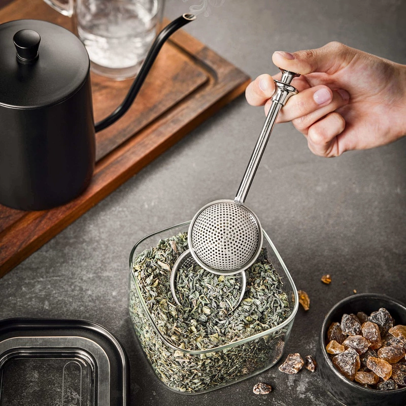 Z inteligentnym zaparzaczem do herbaty T-BALL parzenie liściastej herbaty staje się niezwykle proste i wygodne. Dzięki praktycznemu mechanizmowi otwierania, zaparzacz można łatwo otworzyć i używać jak łyżeczki do odmierzania – wystarczy nabrać porcję herbaty i zamknąć kulkę jednym ruchem. Drobna perforacja kulki pozwala na idealną filtrację, dzięki czemu każda filiżanka herbaty jest klarowna, aromatyczna i pełna smaku.