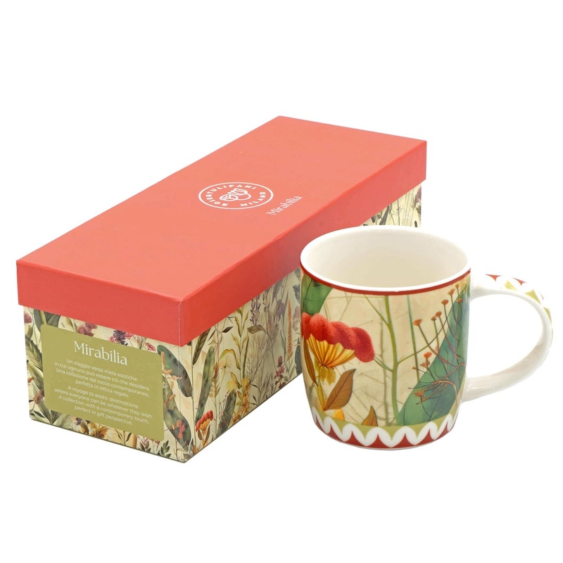 Zestaw dwóch porcelanowych kubków z kolekcji Mirabilia to propozycja dla osób, które cenią przedmioty nie tylko praktyczne, ale i piękne wizualnie. Każdy z kubków zdobi unikatowy roślinny wzór inspirowany naturą, w ciepłej palecie kolorów. Kształt naczyń jest prosty i wygodny w użytkowaniu, a delikatne tłoczenia dodają im artystycznego wyrazu.