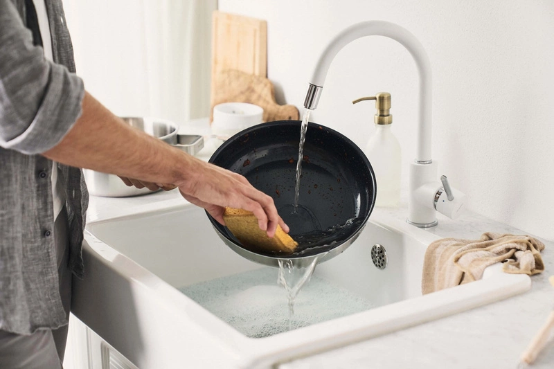Patelnia ZWILLING Pure posiada niezwykle wytrzymałą, ceramiczną powłokę nieprzywierającą CERAFORCE® Black, która jest do trzech razy bardziej trwała niż wcześniejsze powłoki ceramiczne marki. Powłoka ta jest odporna na zarysowania i wolna od PFAS, co zapewnia bezpieczne gotowanie i łatwe czyszczenie, bez ryzyka przywierania potraw.