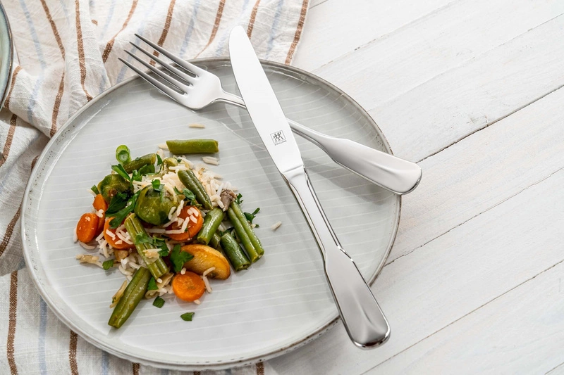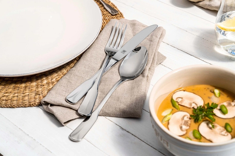 Sztućce ZWILLING Maryland charakteryzują się tzw. wzorem „fiddle”, nawiązującym do klasycznego stylu XVIII wieku. Charakterystyczna dla tego designu jest autentyczna forma oraz eleganckie, srebrzyste wykończenie powierzchni, a także długie zęby widelców. Dzięki temu zestawowi wprowadzisz do swojego stołu czar dawnych epok, ciesząc się historycznym blaskiem w nowoczesnej odsłonie.