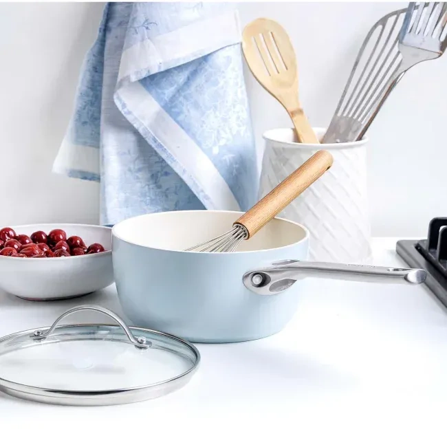 GreenPan Padova Sky Blue 18 cm to idealny wybór dla tych, którzy szukają oryginalnego, pięknego rondla do codziennego użytku – trwałego, zdrowego i przyjemnego w obsłudze. Świetny zarówno jako praktyczne naczynie, jak i ozdoba kuchni.