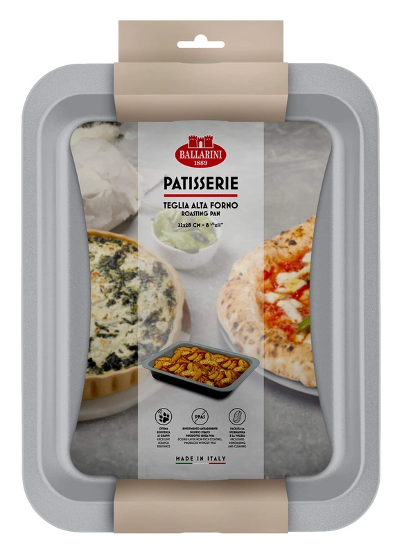 Wszystkie formy serii Patisserie wykonane są z najwyższej jakości bezpiecznej dla zdrowia cienkiej stali, która to powleczona jest z obu stron warstwą powierzchni nieprzywierającej patentu Firmy Ballarini. Powierzchnia ta pozwala na pieczenie bez ryzyka przywierania ciast. Nie zawiera ona w sobie żadnych szkodliwych dla zdrowia substancji a w szczególności PFOA, związków niklu czy też metali ciężkich.