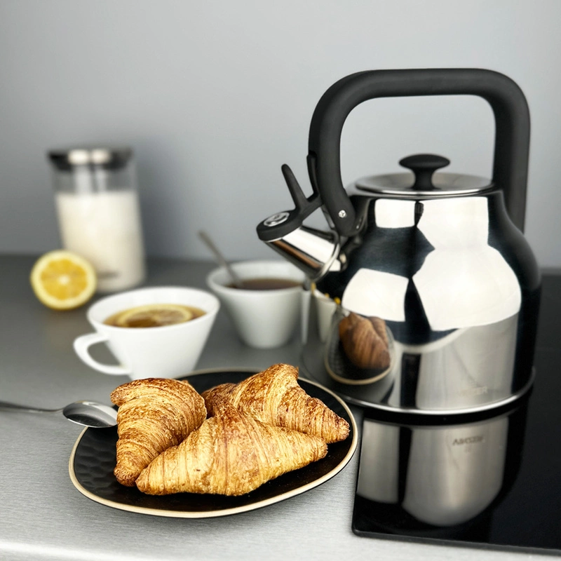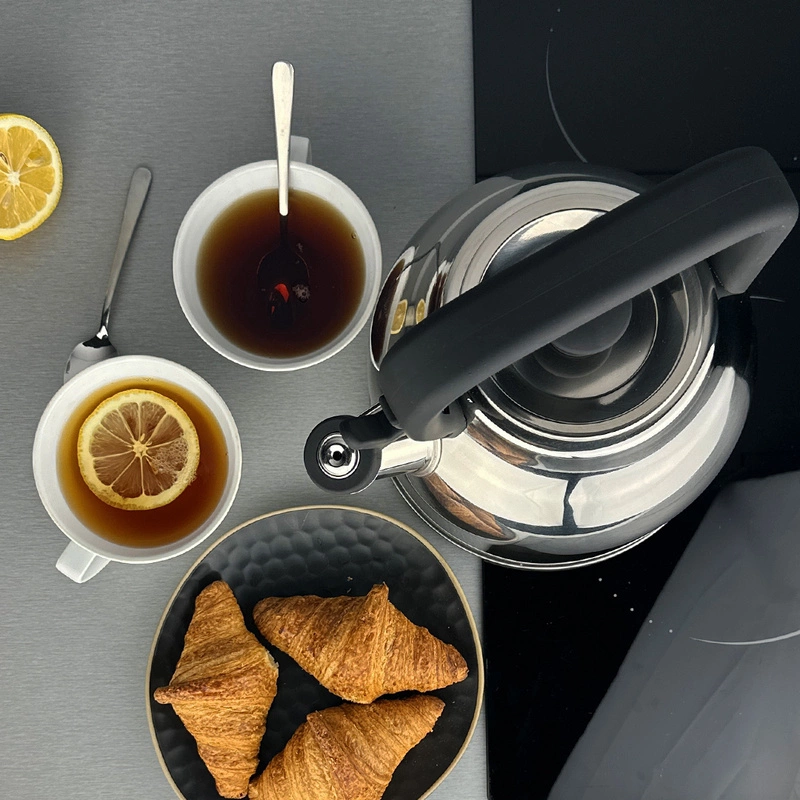 Wylewka wyposażona jest w integrowany gwizdek. Czajnik może być używany na wszystkich typach kuchenek. Nie zaleca się jednak mycia w zmywarkach.