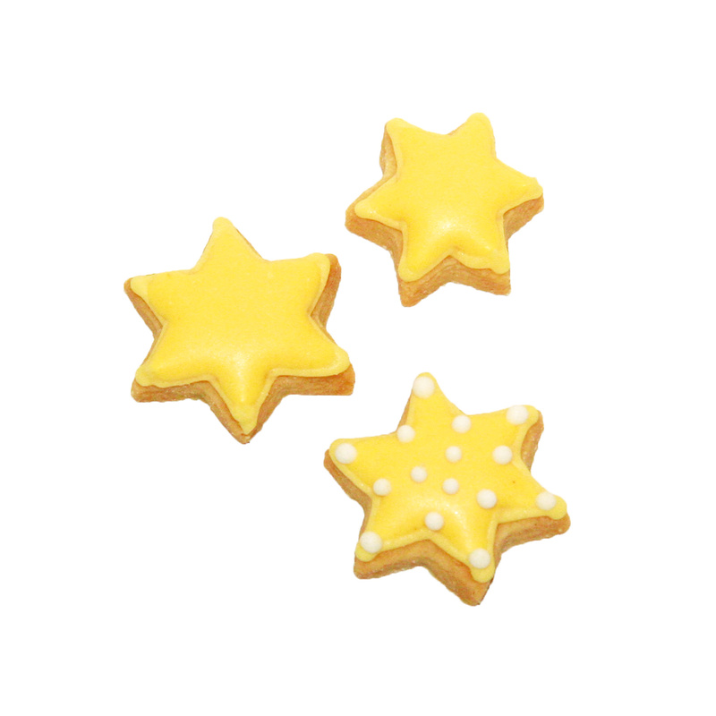 Ze względu na zróżnicowaną wielkość foremek w kształcie gwiazdek można z łatwością ozdobić je stosując lukier, masę cukrową czy różnokolorowe posypki cukrowe.