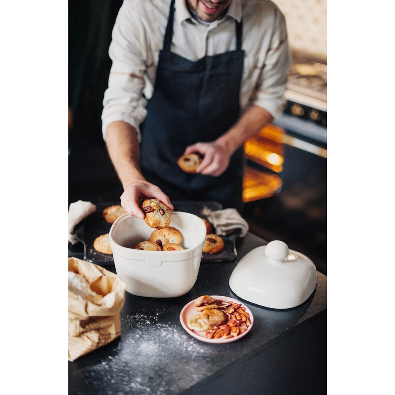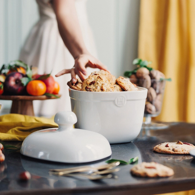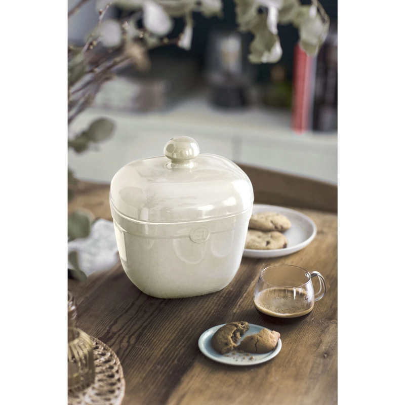 Dawniej w większości domów do przechowywania i konserwowania wszelkiego rodzaju pyszności używano pięknych słoików i kubków… Przywróćmy tę tradycję w nowoczesnym wydaniu, aby stworzyć stylowe rozwiązanie do przechowywania! Dzięki słoikowi na ciasteczka Emile'a Henry'ego każdy słodki i słony przysmak zachowa smak na dłużej, zachowując idealną konsystencję. Ceramiczny słoik, łatwy w użyciu dzięki stylowemu, a zarazem praktycznemu pokrętłu, ma szczelnie dopasowaną pokrywkę, która zapobiega gromadzeniu się wilgoci i nie dopuszcza do zwietrzenia, zbyt miękkiego lub zbyt twardego stanu zawartości. Szeroki otwór ułatwia sięganie do wnętrza słoika. Jego pojemny rozmiar pozwoli na przechowywanie całej porcji świeżych smakołyków. Po opróżnieniu, usunięcie okruchów (jeśli jakieś zostały…) jest łatwe. Słoik można następnie umyć w zmywarce. Wygodny, o eleganckim, ponadczasowym wyglądzie, słoik na ciasteczka szybko stanie się pożądanym elementem centralnym — na kuchennym blacie lub stoliku kawowym. Wymiary pojedynczego przedmiotu: Weight : 2,68kg Length :21cm Width: 19cm Height : 25cm Inner length : 18cm Inner width: 16cm Inner height : 13cm Max capacity : 2,45L