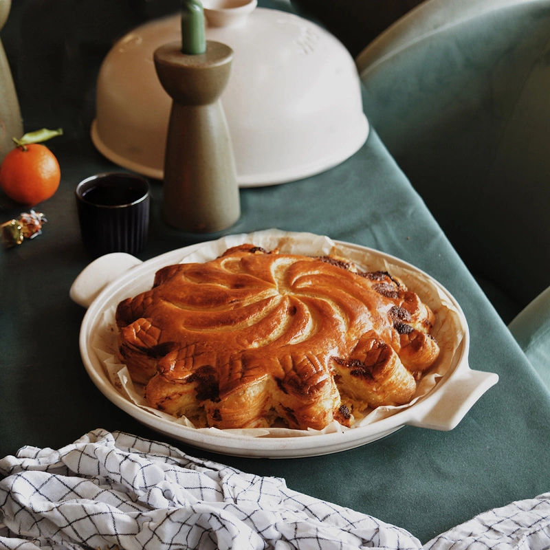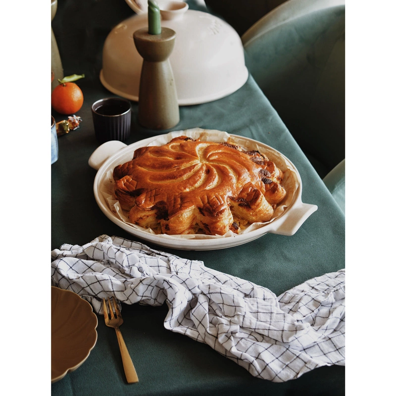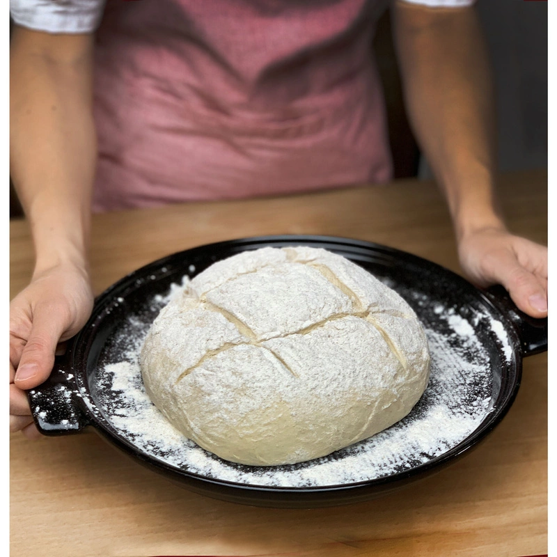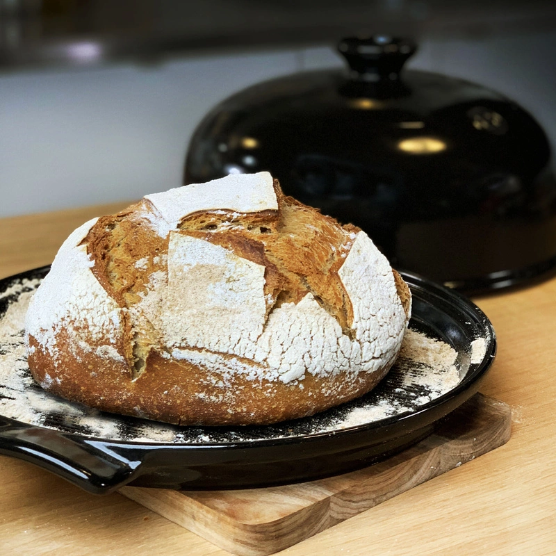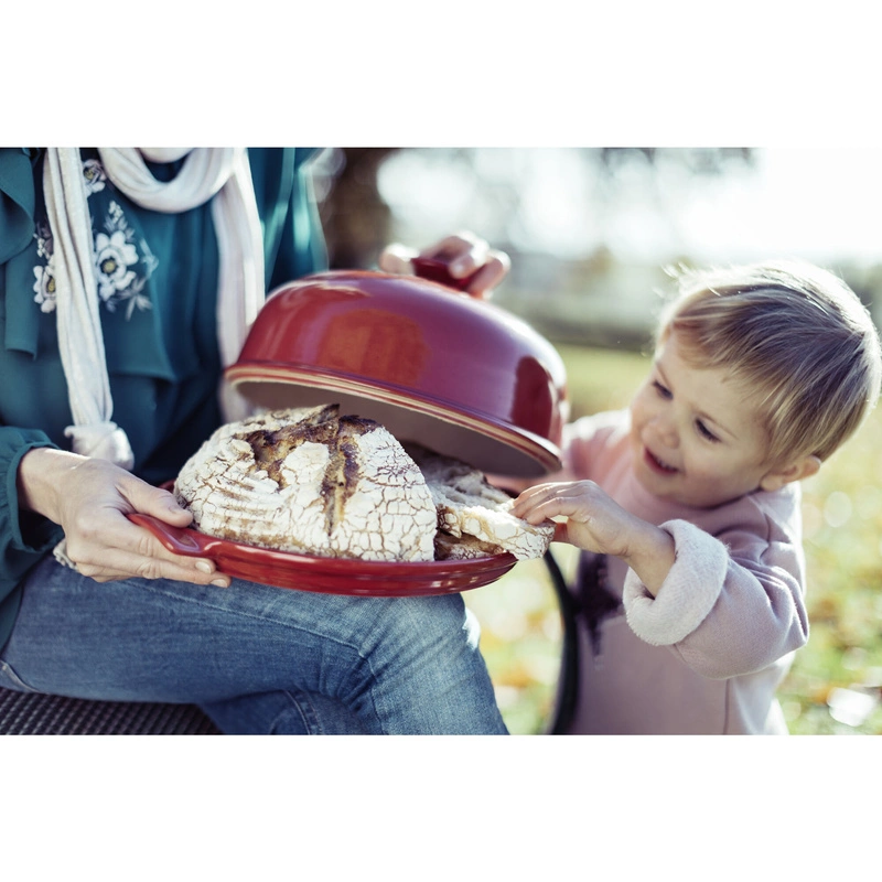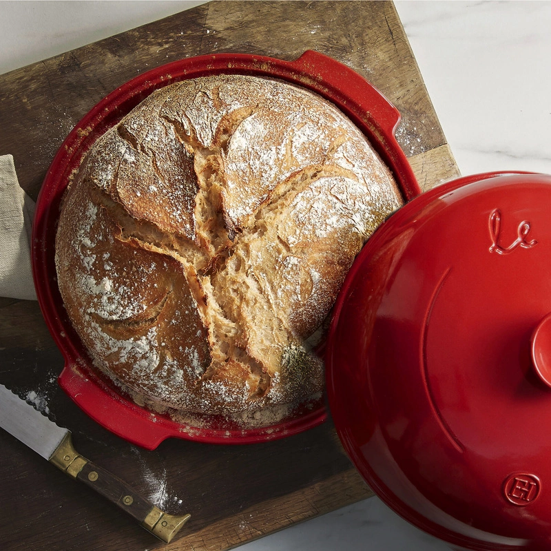 Nasze naczynie do chleba, będący efektem 2 lat badań, szybko stanie się Twoim najlepszym przyjacielem! Zaokrąglony kształt klosza jest identyczny z tradycyjnym piecem chlebowym z kopułą, co zapewnia chlebowi odpowiedni poziom wilgotności podczas pieczenia. Nasza innowacyjna ceramika ogniotrwała pozwoli Ci uzyskać ładną, grubą skórkę i jędrne, lekkie wnętrze. Odkryj na nowo przyjemność pieczenia domowego chleba dzięki oryginalnym i prostym przepisom. Dołączona książka kucharska zawiera porady i wskazówki, jak upiec własny chleb, jakiego nigdy wcześniej nie robiłeś! Wszystkie produkty Emile Henry są produkowane we Francji i objęte dziesięcioletnią gwarancją. Wymiary pojedynczego przedmiotu: Weight : 2,73kg Length :34cm Width: 34cm Height : 16,5cm Max capacity : 4,5L