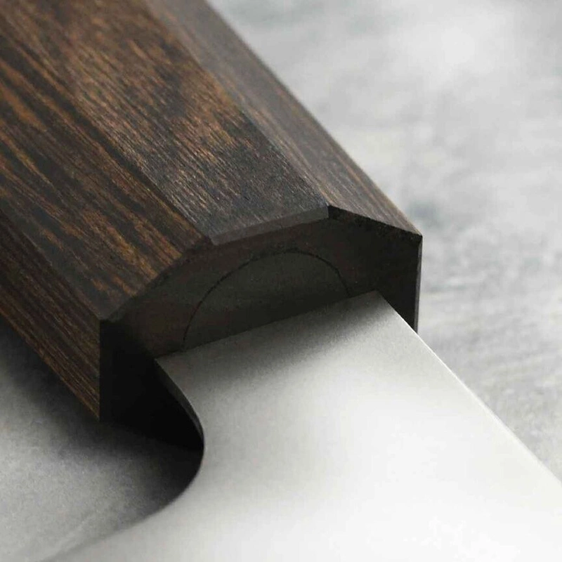 Yaxell jest od 1932 roku wiodącym producentem noży najwyższej jakości, używanych przez najlepszych szefów kuchni, profesjonalnych kucharzy i smakoszy na całym świecie. Yaxell przez lata zdobył wiele nagród za najlepszy nóż kuchenny w Niemczech, Szwecji, Danii i USA. Yaxell zbudował na starożytnej tradycji wytwarzania ostrzy, łącząc najlepsze zaawansowane technologie z niezrównaną wiedzą i doświadczeniem tradycyjnego rzemiosła. Ostrza ze stali nierdzewnej Yaxell są podgrzewane w piecu do bardzo wysokiej temperatury, a następnie hartowane lodem. Następnie są ponownie hartowane w wysokiej temperaturze, aby ostrze było mocne i trwałe, a jego wydajność trwała. Ta specjalna obróbka cieplna sprawia, że ostrza są odporne na korozję. Uchwyty Yaxell są wykonane z Micarty, naturalnego materiału z żywicy i lnu, który zapewnia optymalną wytrzymałość i najlepszą higienę, zamykając wszelkie szczeliny między uchwytem a ostrzem ze stali. Noże Yaxell są opracowywane od podstaw, zaprojektowane tak, aby pasowały do różnych celów i stylów życia. Każdy wysokiej klasy nóż jest pięknie ręcznie wykonany i wyważony, z japońską nazwą wyrytą na doskonałym ostrzu ze stali nierdzewnej i z wytrzymałą rękojeścią z żywicy i lnu, ukształtowaną dla wygody. Hana"Piękno noży" Ostrze Rdzeń ostrza wykonany jest z najwyższej jakości stali nierdzewnej MOVAX, która jest pokryta z obu stron wysokiej jakości stalą nierdzewną. MOVAX superior składa się z chromu / molibdenu / wanadu, które mogą osiągnąć 58 Rockwella. Przez lata był to jeden z najpopularniejszych materiałów ostrzy do kuchni. Uchwyt Wyglądający ekskluzywnie ośmiokątny ciemnobrązowy uchwyt z drewna pakka opracowany przez doświadczonych projektantów Yaxell osiągnął doskonałą równowagę, optymalną kontrolę i niestrudzone cięcie. Pielęgnacja ostrza Aby zachować ostrość noża do cięcia, każdy nóż wymaga odpowiedniej pielęgnacji i uwagi. -Płucz nóż tylko ręcznie (nigdy w zmywarce) i niewielką ilością łagodnego detergentu. Unikaj ostrych detergentów lub gąbek, aby zapobiec uszkodzeniu powierzchni. -Po wypłukaniu osusz nóż miękką szmatką i przechowuj go w dobrze wentylowanym miejscu (np. magnes na nóż lub stojak na nóż), aby umożliwić całkowite wyschnięcie noża. Jeśli nóż jest przechowywany w wilgotnych warunkach w szczelnym miejscu, takim jak pokrowiec na nóż przez długi czas, może pojawić się rdza. -Wysokiej jakości noży nigdy nie należy czyścić w zmywarce. Wysokie temperatury programu mycia mogą trwale zmienić twardość stali, a tym samym zmniejszyć wydajność cięcia. Ponadto sól do mycia naczyń może uszkodzić stal, a uchwyty Micarta zostaną uszkodzone. -Najlepszą podkładkę do krojenia nadaje się drewniana lub plastikowa deska. Materiały takie jak szkło lub kamień nie powinny być używane jako podkładka do krojenia, ponieważ powodują szybsze zużycie ostrza. -Ze względu na twardość noży Yaxell zachowują ostrość znacznie dłużej niż tradycyjne noże kuchenne. Ze względu na wysoką twardość stali jest ona również wrażliwa na ekstremalną siłę. Unikaj krojenia mrożonej żywności lub kości i nigdy nie używaj noża jako narzędzia do podważania czegoś, ponieważ może to spowodować uszkodzenie. Długość ostrza: 12 cm Waga: 0,155 kg Wymiary opakowania: 30x8x2 cm