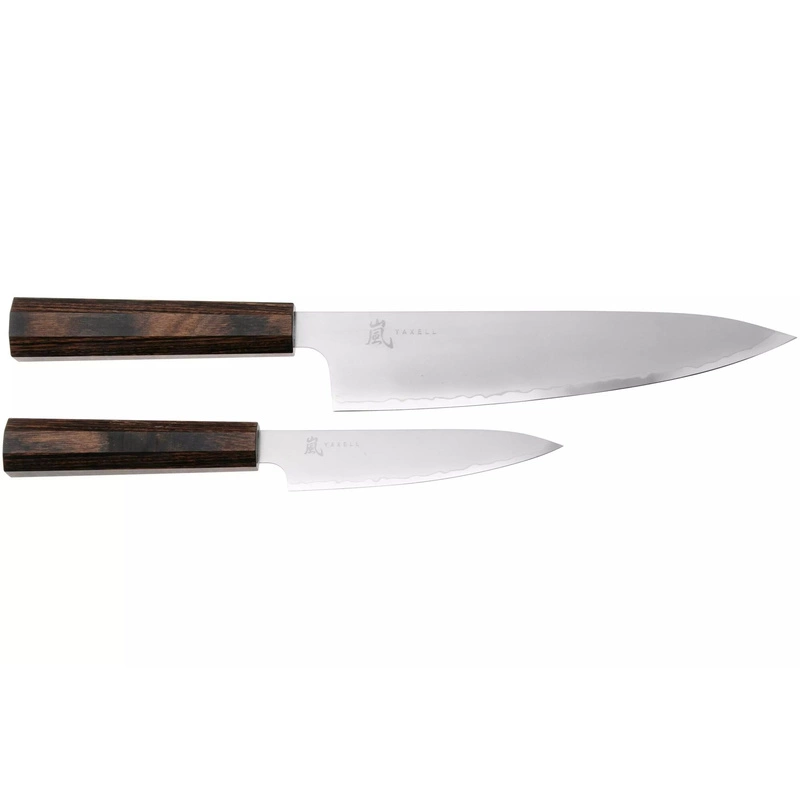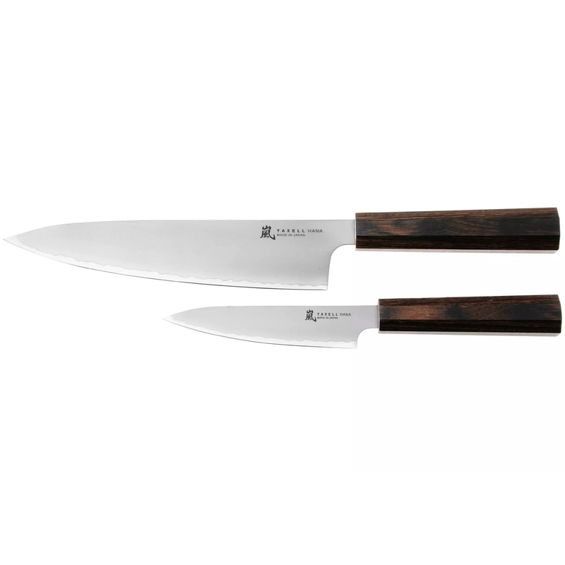Yaxell jest od 1932 roku wiodącym producentem noży najwyższej jakości, używanych przez najlepszych szefów kuchni, profesjonalnych kucharzy i smakoszy na całym świecie. Yaxell przez lata zdobył wiele nagród za najlepszy nóż kuchenny w Niemczech, Szwecji, Danii i USA. Yaxell zbudował na starożytnej tradycji wytwarzania ostrzy, łącząc najlepsze zaawansowane technologie z niezrównaną wiedzą i doświadczeniem tradycyjnego rzemiosła. Ostrza ze stali nierdzewnej Yaxell są podgrzewane w piecu do bardzo wysokiej temperatury, a następnie hartowane lodem. Następnie są ponownie hartowane w wysokiej temperaturze, aby ostrze było mocne i trwałe, a jego wydajność trwała. Ta specjalna obróbka cieplna sprawia, że ostrza są odporne na korozję. Uchwyty Yaxell są wykonane z Micarty, naturalnego materiału z żywicy i lnu, który zapewnia optymalną wytrzymałość i najlepszą higienę, zamykając wszelkie szczeliny między uchwytem a ostrzem ze stali. Noże Yaxell są opracowywane od podstaw, zaprojektowane tak, aby pasowały do różnych celów i stylów życia. Każdy wysokiej klasy nóż jest pięknie ręcznie wykonany i wyważony, z japońską nazwą wyrytą na doskonałym ostrzu ze stali nierdzewnej i z wytrzymałą rękojeścią z żywicy i lnu, ukształtowaną dla wygody. Hana"Piękno noży" Ostrze Rdzeń ostrza wykonany jest z najwyższej jakości stali nierdzewnej MOVAX, która jest pokryta z obu stron wysokiej jakości stalą nierdzewną. MOVAX superior składa się z chromu / molibdenu / wanadu, które mogą osiągnąć 58 Rockwella. Przez lata był to jeden z najpopularniejszych materiałów ostrzy do kuchni. Uchwyt Wyglądający ekskluzywnie ośmiokątny ciemnobrązowy uchwyt z drewna pakka opracowany przez doświadczonych projektantów Yaxell osiągnął doskonałą równowagę, optymalną kontrolę i niestrudzone cięcie. Pielęgnacja ostrza Aby zachować ostrość noża do cięcia, każdy nóż wymaga odpowiedniej pielęgnacji i uwagi. -Płucz nóż tylko ręcznie (nigdy w zmywarce) i niewielką ilością łagodnego detergentu. Unikaj ostrych detergentów lub gąbek, aby zapobiec uszkodzeniu powierzchni. -Po wypłukaniu osusz nóż miękką szmatką i przechowuj go w dobrze wentylowanym miejscu (np. magnes na nóż lub stojak na nóż), aby umożliwić całkowite wyschnięcie noża. Jeśli nóż jest przechowywany w wilgotnych warunkach w szczelnym miejscu, takim jak pokrowiec na nóż przez długi czas, może pojawić się rdza. -Wysokiej jakości noży nigdy nie należy czyścić w zmywarce. Wysokie temperatury programu mycia mogą trwale zmienić twardość stali, a tym samym zmniejszyć wydajność cięcia. Ponadto sól do mycia naczyń może uszkodzić stal, a uchwyty Micarta zostaną uszkodzone. -Najlepszą podkładkę do krojenia nadaje się drewniana lub plastikowa deska. Materiały takie jak szkło lub kamień nie powinny być używane jako podkładka do krojenia, ponieważ powodują szybsze zużycie ostrza. -Ze względu na twardość noży Yaxell zachowują ostrość znacznie dłużej niż tradycyjne noże kuchenne. Ze względu na wysoką twardość stali jest ona również wrażliwa na ekstremalną siłę. Unikaj krojenia mrożonej żywności lub kości i nigdy nie używaj noża jako narzędzia do podważania czegoś, ponieważ może to spowodować uszkodzenie. Zestaw składa się z noży: *34800 *34802 Waga: 0,440 kg Wymiary opakowań: 40,5x14x3 cm