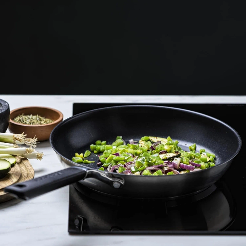 Patelnia Classic z ceramiczną powłoką nieprzywierającą od KitchenAid pozwoli przygotować soczyste mięsa, dania stir-fry, chrupiące warzywa i wiele innych smakołyków. Stworzona została z myślą o wydajności i trwałości, dzięki czemu zapewnia najlepszą jakość oraz doskonałe rezultaty smażenia.