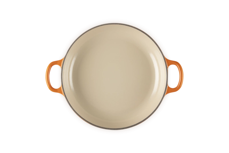 Wykonany w legendarnej odlewni we Francji, ten żeliwny garnek to wszechstronne naczynie o płaskim dnie i niskich ściankach – idealne do smażenia, pieczenia, zapiekanek i dań stir fry. Emaliowane wnętrze ułatwia czyszczenie, a żeliwo zapewnia równomierne rozprowadzanie ciepła i dłuższe utrzymywanie temperatury.