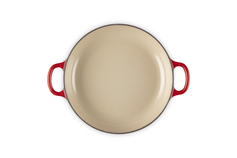 Wykonany w legendarnej odlewni we Francji, ten żeliwny garnek to wszechstronne naczynie o płaskim dnie i niskich ściankach – idealne do smażenia, pieczenia, zapiekanek i dań stir fry. Emaliowane wnętrze ułatwia czyszczenie, a żeliwo zapewnia równomierne rozprowadzanie ciepła i dłuższe utrzymywanie temperatury.