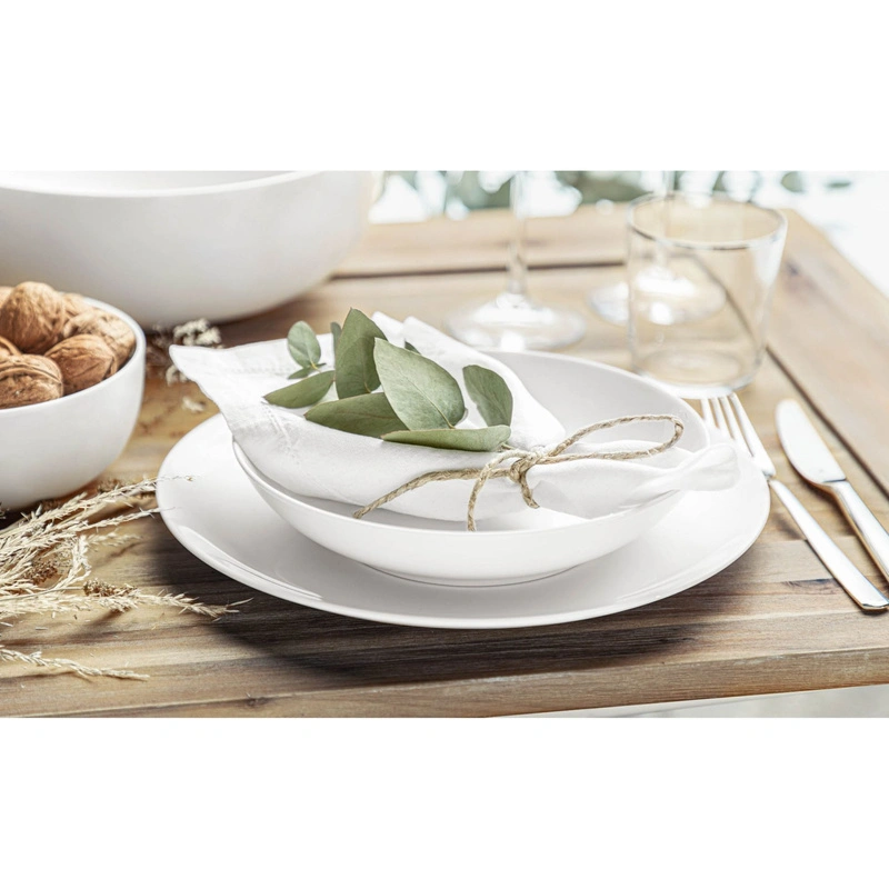 Wykonane z porcelany naczynia charakteryzują się subtelną minimalistyczną bielą. Zastosowanie wysokiej jakości materiałów sprawia, że zestaw jest nie tylko piękny, ale także funkcjonalny i odporny na codzienne użytkowanie.