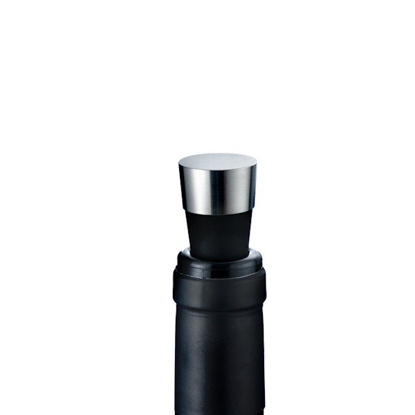 Korek wykonany ze stali nierdzewnej i tworzywa sztucznego.